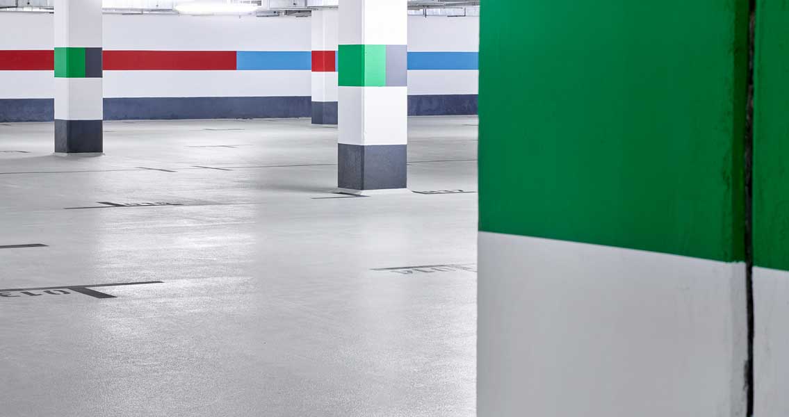 The repair of the approximately 8,000 m² floor slab of the lower parking deck was implemented using MC's OS 8 surface protection system with MC-DUR 1322. This is a rigid coating complex offering easy application combined with high mechanical load-bearing capacity and confirmed resistance to rising damp. The intermediate deck, also measuring around 8,000 m², was rehabilitated using the OS 11b surface protection system from MC, a flexible single-layer complex with a high crack-bridging capability.